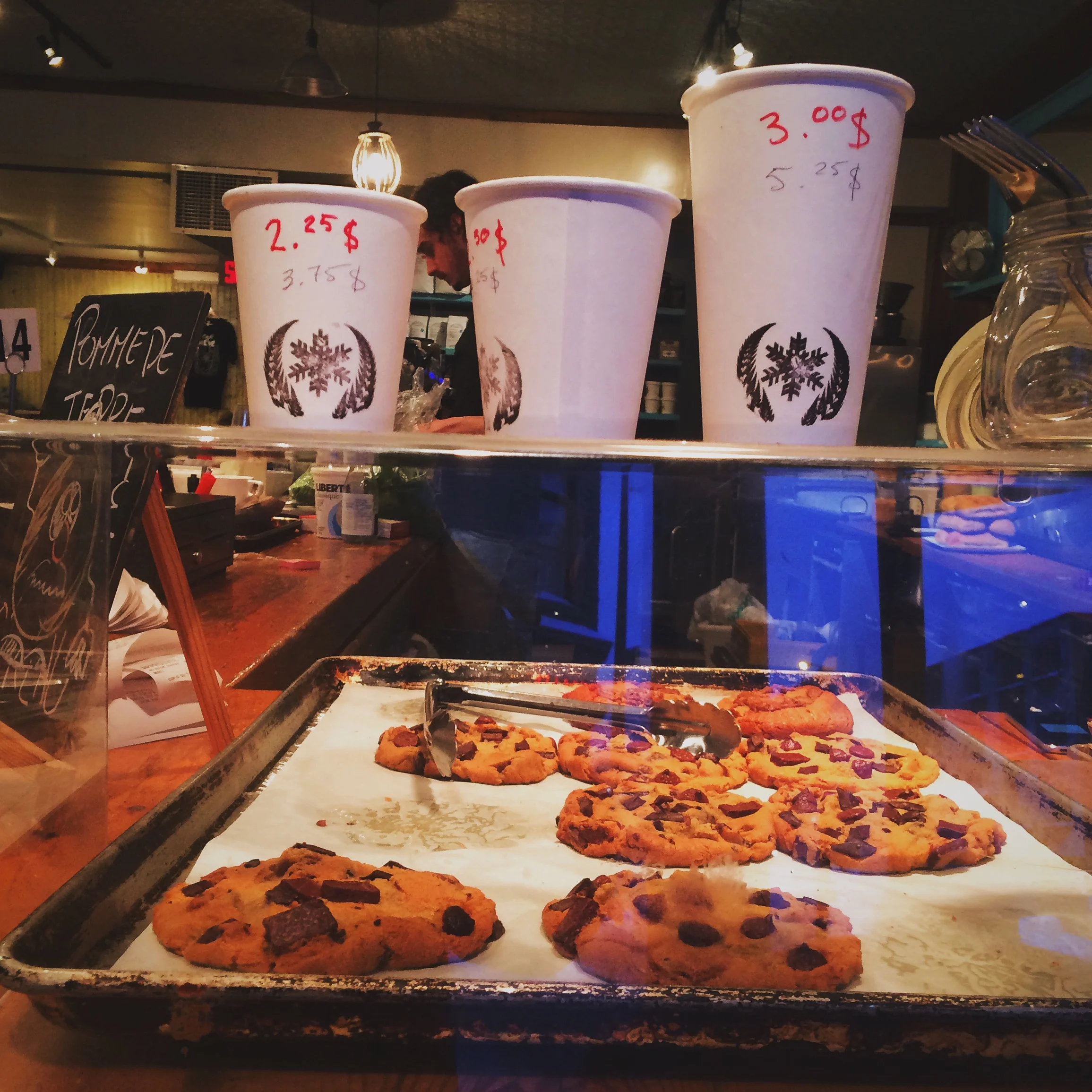 Let’s get back to Névé, where my faith in baristas was partly restored. The day of my visit Névé featured Pig Iron Roasters from Mississauga, Cut from Toronto and Anchored Coffee from Nova Scotia. I had a Guji Uraga from Ethiopia roasted by Anchored Coffee. It was satisfactory but not very memorable. It was well balanced but lacking in flavour, with some underlying almond and earthy tones. That being said, I did have a lot of coffee that day so my palette might have been completely wrecked when I got to Névé. I didn't get to the food but they do have an interesting menu on hand with everything from toast to soups as well as elaborate sandwiches and eggs Benedict. I also hear that their chocolate chip cookies are to die for. The smell alone made me melt inside.